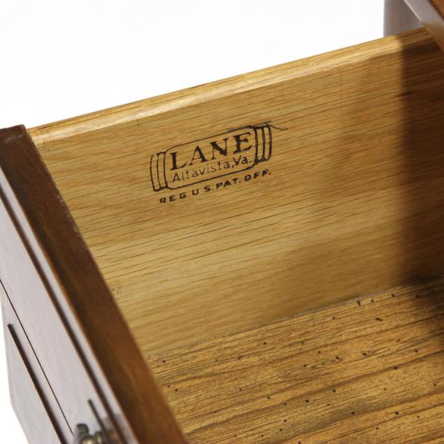 1960s, walnut and mahogany, single drawer, labeled, style no. 967-02.