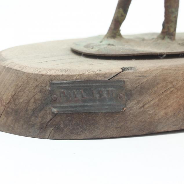 1960s, patinated copper, set on a wood stand, with artist's plaque.