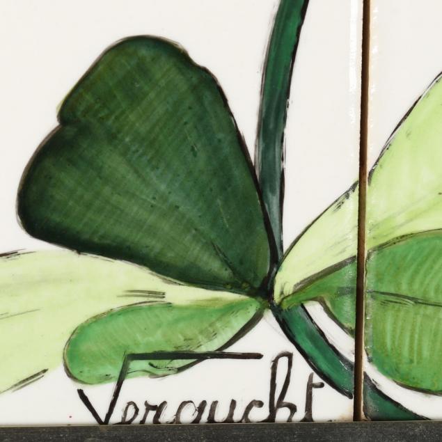 Fernand Vergucht (Belgian, 20th C), Four Oil on Tile Works Picturing Birds