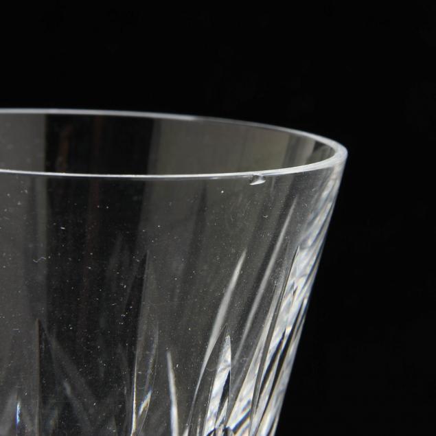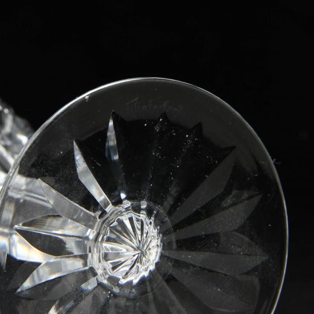 With vertical cuts adorning body, hexagonal cut stem, star cut base, all signed.