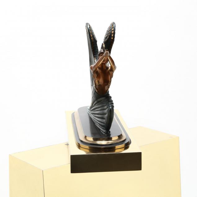 Bronze cast in the lost wax method, with patination, gold leaf accents and polished embellishments; issued by Fine Arts Acquisitions in 1984, numbered 27/350; inscribed signature on the integral plinth.