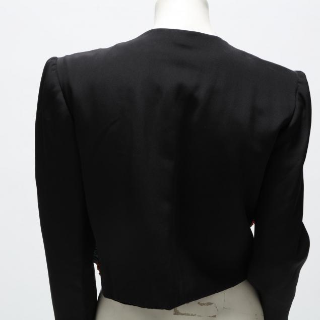 Made in France, circa 1980, composed of black silk, the beaded front panels depict a glittering world of undersea life using glass 'jewels', faux pearls, silk embroidery, and tubular beads to portray anemone, starfish, coral etc.