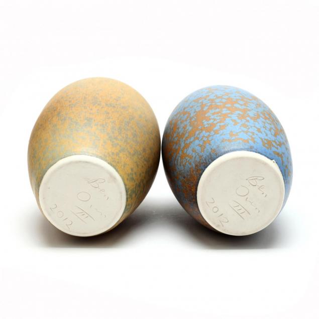 Blue and gold 'Stardust' glaze, tapered baluster form, both signed on the bottom and dated 2012.