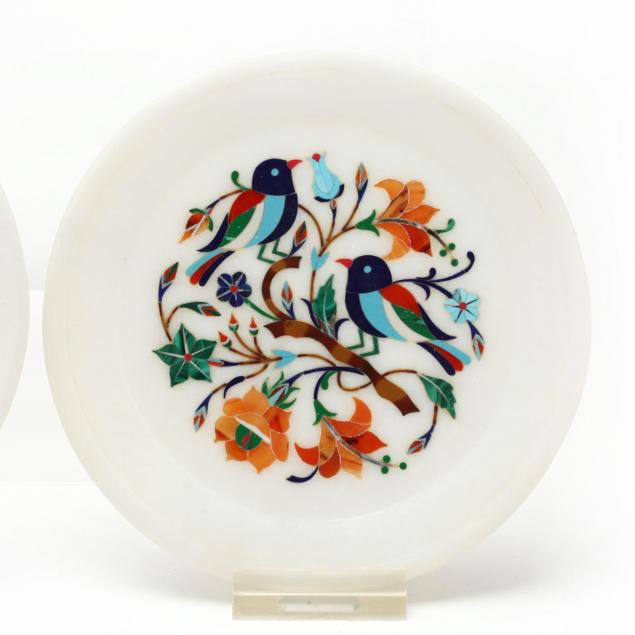 A Group of Indian Marquetry Floral Makrana Marble Tableware