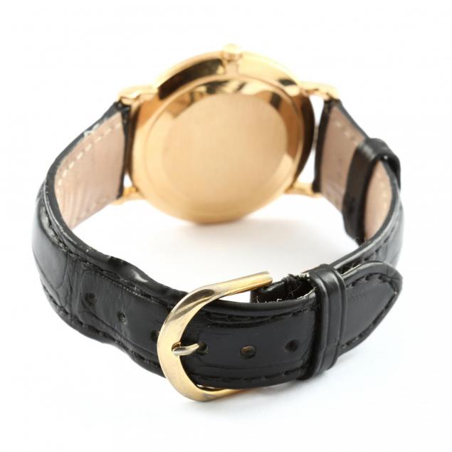 Good estate condition; minor scuffs to gold; running at time of examination. Please see Terms and Conditions of Sale: Clocks and Watches.