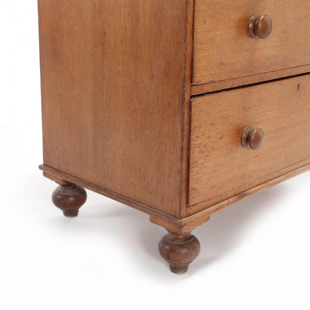 Early 19th century, oak, pine secondary, one part form, press over four drawers, raised on suppressed ball feet.