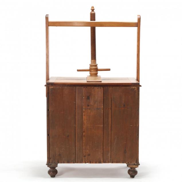 Shrinkage crack to top; press inoperable; some surface stains and shrinkage crack to side panels.