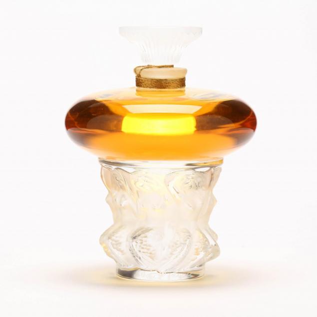 Ondines , 30 ml., sealed, 100% full, two frosted graceful water sprites adorn the stopper, hand blown numbered A969, with original box, outer cardboard box, and paperwork; Lalique
