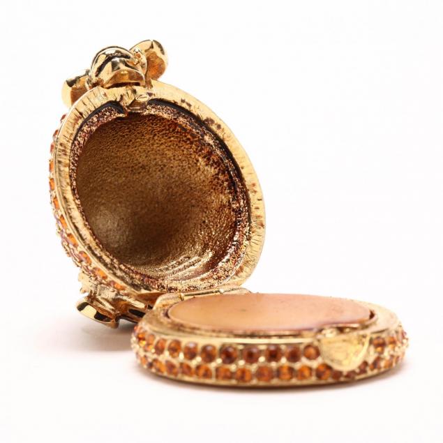 To include: the Beehive, in original box with storage bag (box has label wrinkle); Carousel, in original box with bag (some perfume transfer to the compact lid); rocking horse (no box); and Yellow Rose (original packaging) (some perfume transfer to compact lid).