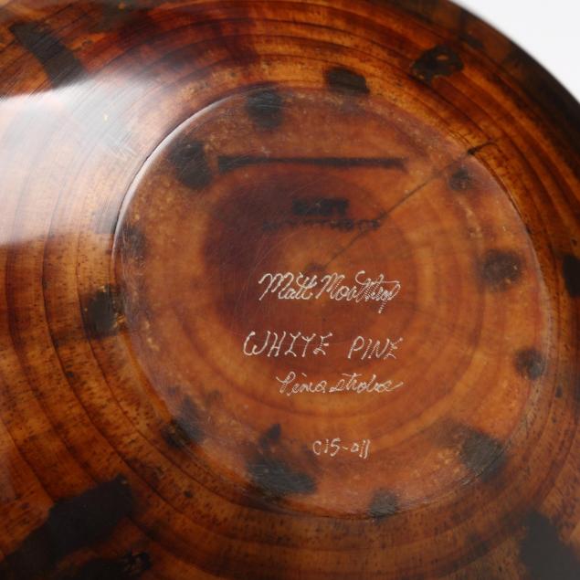 White pine, polished clear lacquer, signed on the bottom with wood identification.