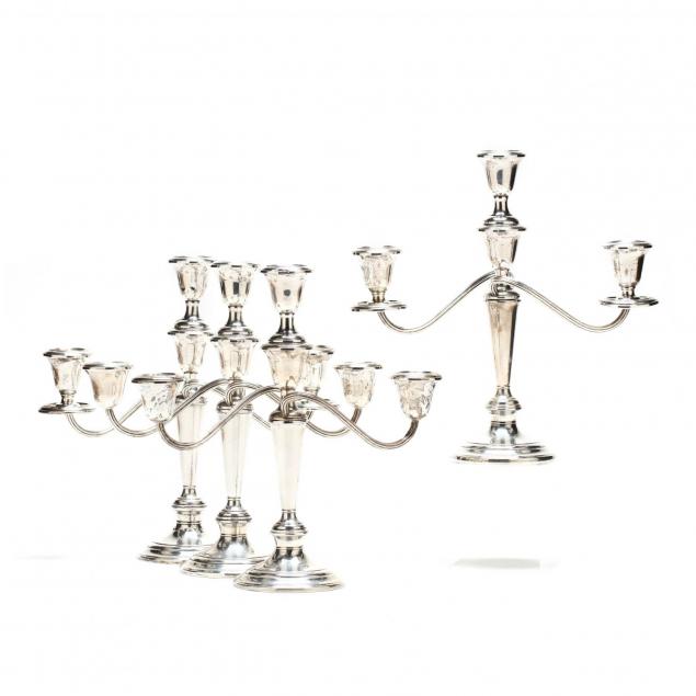 Convertible form, pattern number 808/1, each may be used as three light candelabra or tall / low single candlesticks.