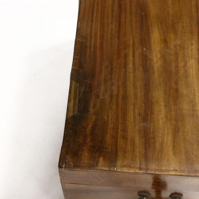 19th century, dove tailed, with bail handles, open interior.