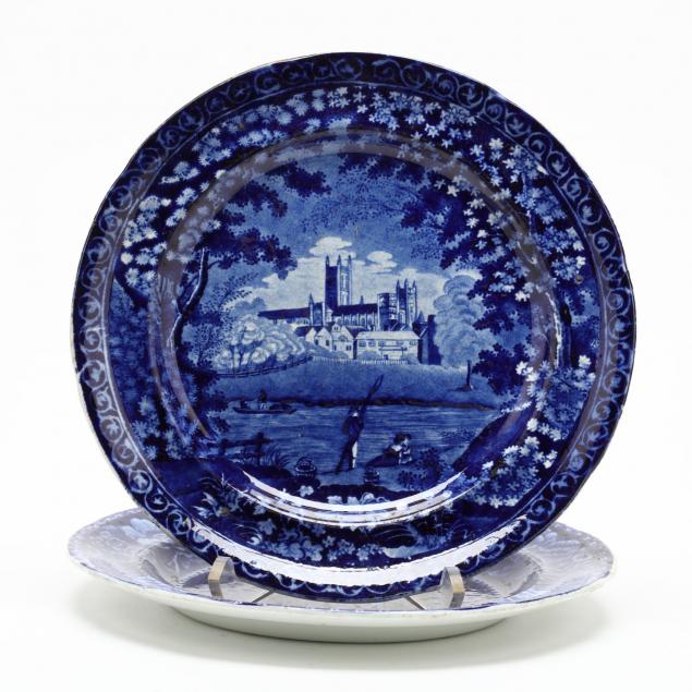 19th century, to include a Clews Ware plate with landscape and manor house; R. Hall's Picturesque Scenery plate and one with the Italian scenery.