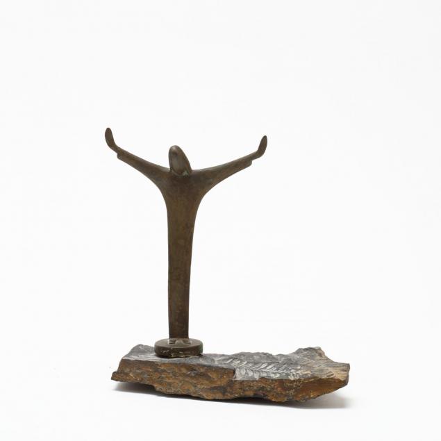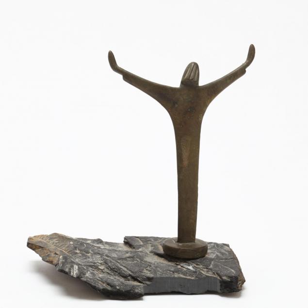 Including a Nombe oval serving bowl, and a brass and fossilized stone sculpture of Christ the Redeemer, unmarked.