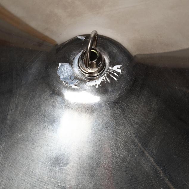 Circa 1980, metal shade, invisible set wiring, curled metal base, two light form.