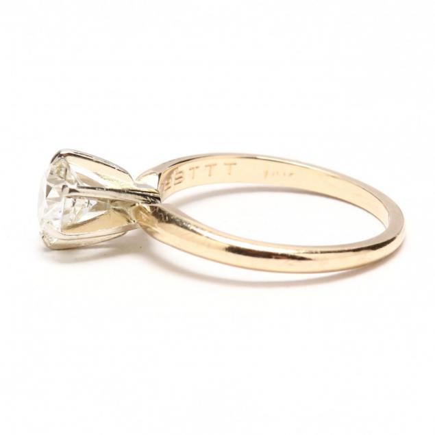 The round brilliant cut diamond weighing approximately .78 carat (H color, VS1 clarity) with a good cut set in a six prong mount, marked 14KT.