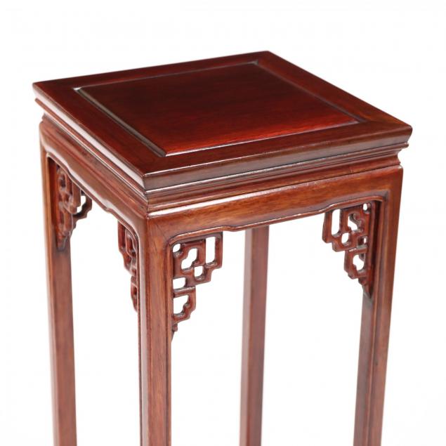 Hardwood, paneled top, pierced returns, raised on straight molded legs.