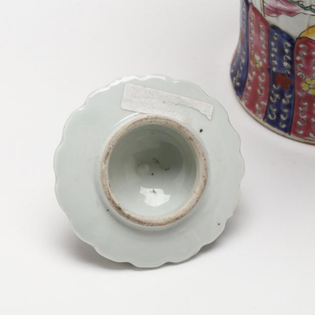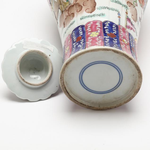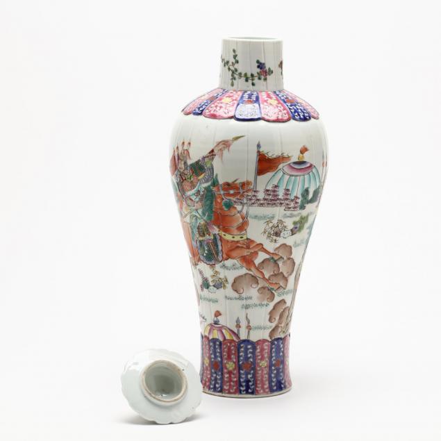 20th century, body decorated with warriors on horseback, with lobed bands of decoration to upper and lower rims.