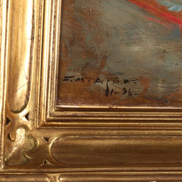 Oil on board, signed and dated "E. M. Ashe / 1-96" at lower left, presented in an attractive later gilt and gesso frame.