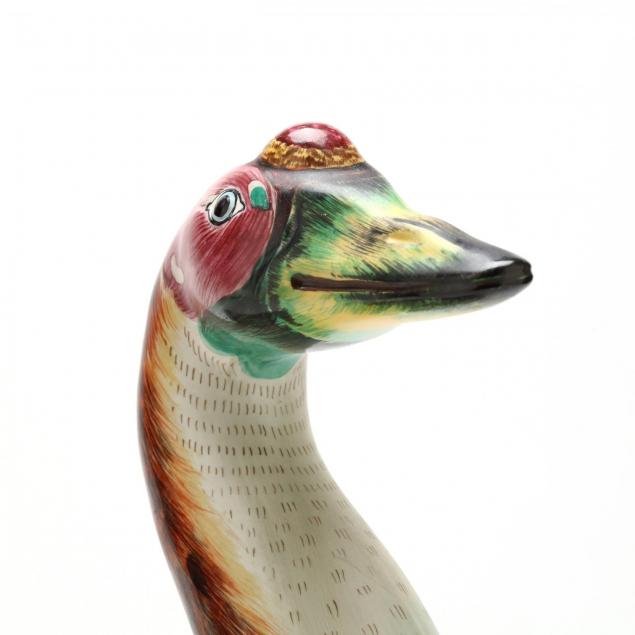 20th century, hand painted and made in Italy, two part form, traditional goose with bright coloration, marked.