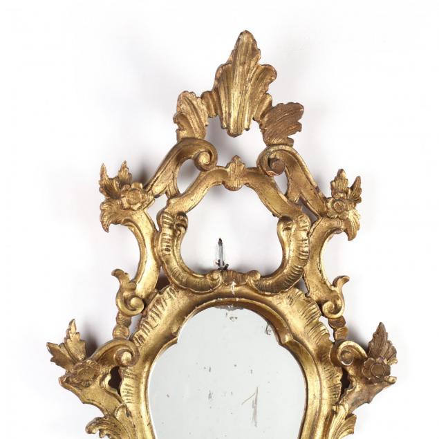 18th century, probably Italian, cartouche form, two shaped glass panels surrounded by carved scrolled decoration.