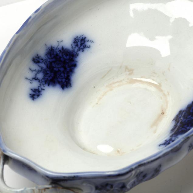 Four Antique Flow Blue Lidded Vegetable Dishes