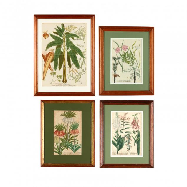 Engravings in color with additional hand coloring, on laid paper, presented in wooden frames, some uniform.