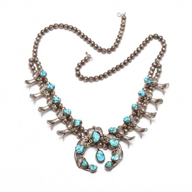 Southwestern Sterling and Turquoise Squash Blossom necklace
