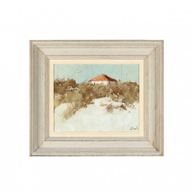 The first an oil on canvas painting of dunes and seagulls, signed, framed (DOA 13 x 15 in.); the second a watercolor and whitening on paper, signed, matted and framed under glass (DOA 7 1/8 x 9 1/8 in.).
