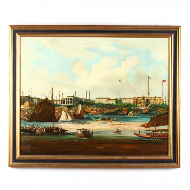Oil on canvas, 20th century, presented in painted and gilt wood frame.