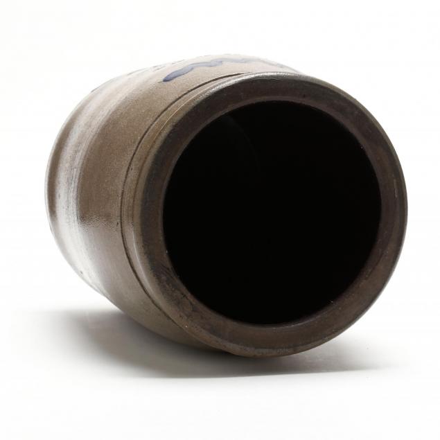 Pittston, PA., capacity stamped 1 1/2, decorated with a single cobalt flower (9.25 x 9 in.) (top to bottom branching hairline); T. F. Reppert Greensboro PA., stencil decorated, two gallon (4.5 in. hairline extending to the bottom) (11.75 in.)