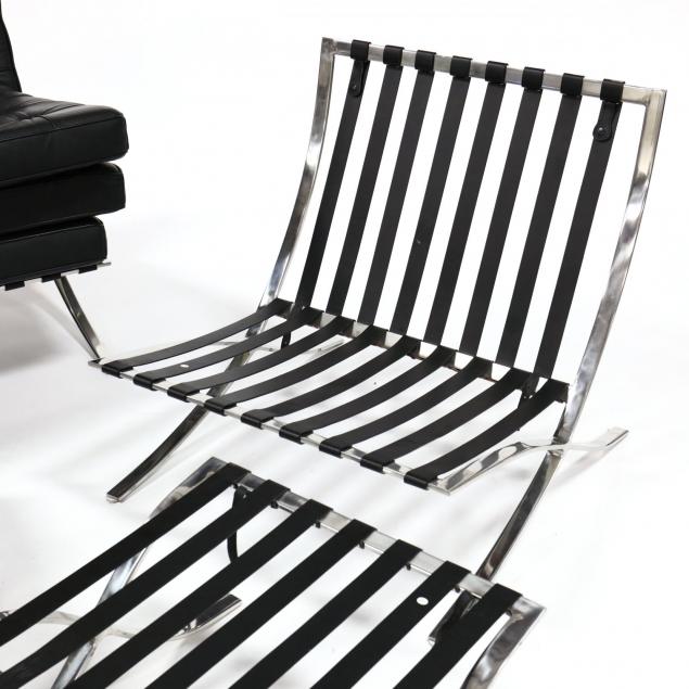 After Mies Van Der Rohe, Pair of Barcelona Chairs and Ottomans