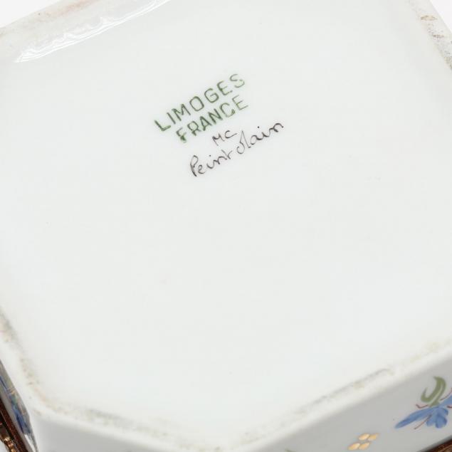 Including Tiffany world discovery lidded box, a Limoges watermelon box and a Limoges blue flower box, signed.