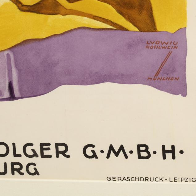This tea advertisement by Hohlwein rarely comes available at auction. This is an especially nice, bright impression.