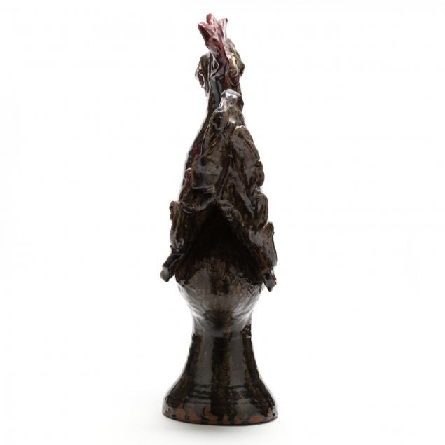 Large molded and turned polychrome glazed figure displaying unusual avian features of toothy open mouth, projecting tongue, signed beneath the tail.