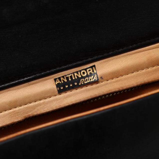 Made in Italy, the first is made of black calfskin with natural tone leather interior, change purse and pocket mirror (fair condition with separation at the base seam; other signs of wear and use); the second is composed of distressed leather with a bamboo handle and toggle closure (overall wear; fair condition) (6.5 x 10.5 x 6.5 in.)