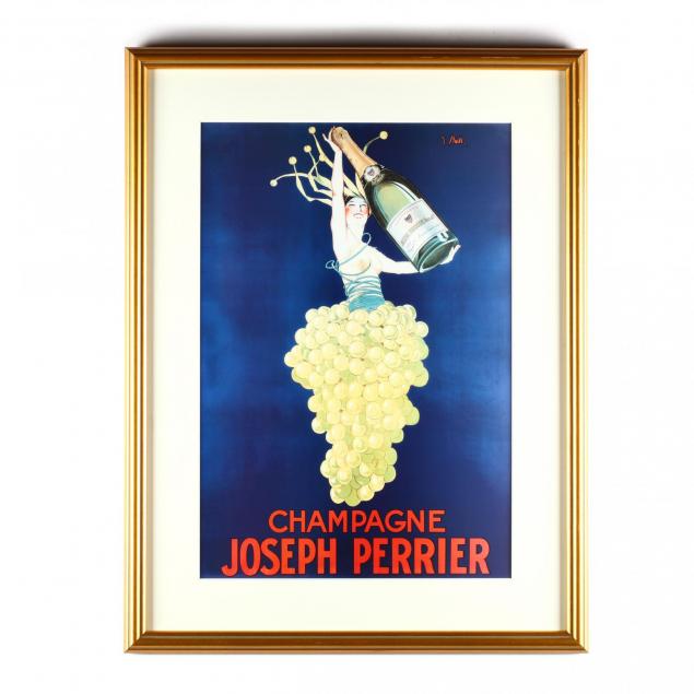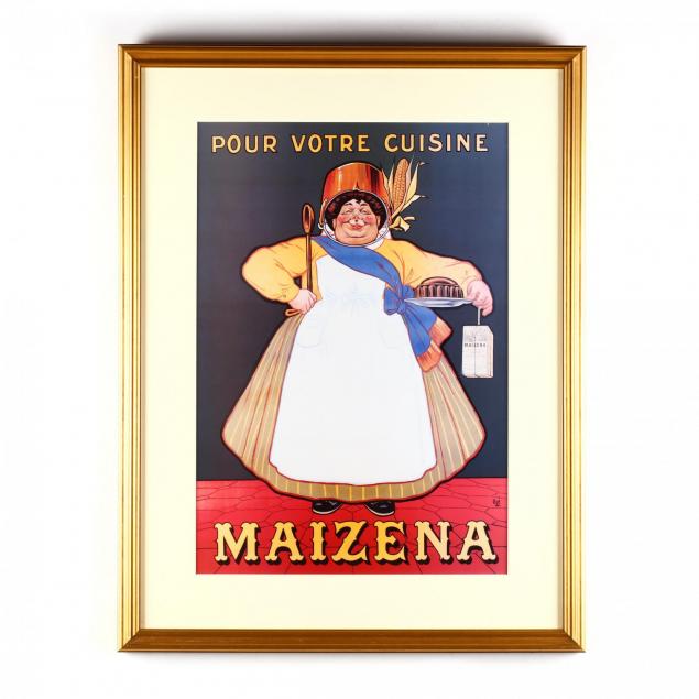 Offset lithographs in color, 20th century, to include the following three works after the original posters: Champagne Joseph Perrier after J. Stall (1874-1933), Supreme Biere Gangloff after Marcellin Auzolle (French, 1862-1942), and Maizena, Pour votre Cuisine after Eugène Ogé (1861-1936), presented in attractive and uniform matting and gilt framing, one frame varies slightly.