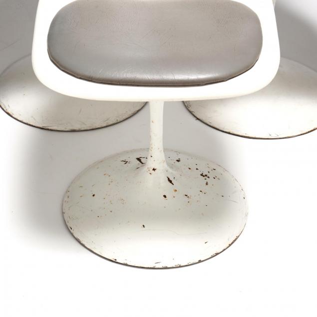 Contemporary Shells, New York, 1970s, fiberglass and aluminum wth grey naugahyde seats, on swivel base, labeled.
