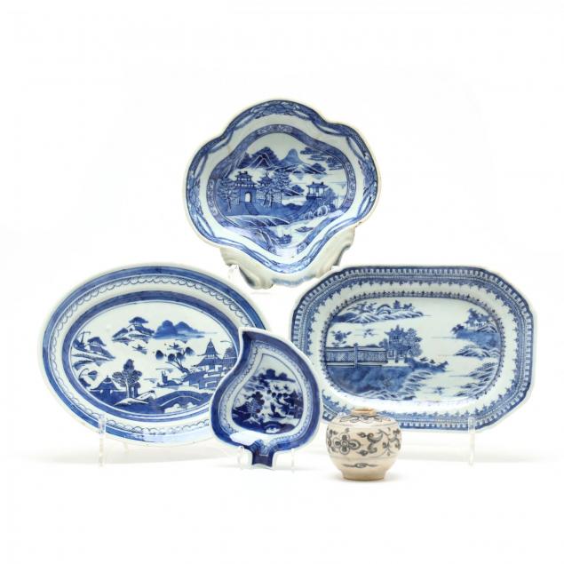 19th and early 20th century, including a tobacco leaf dish, shrimp dish, small jar, oval platter and a rectangular platter.