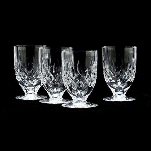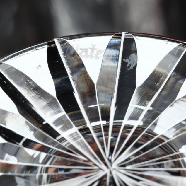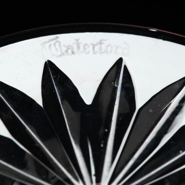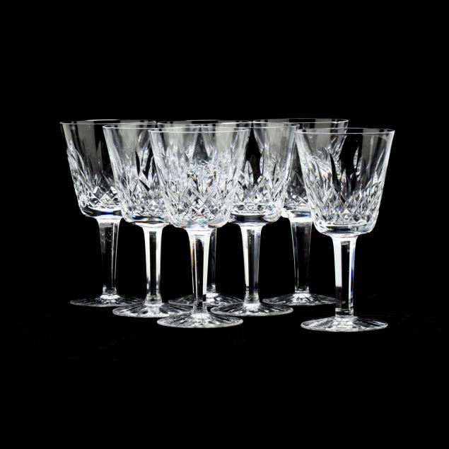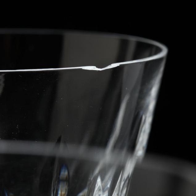 Including four short footed tumblers (4 in.), and seven white wine stems (5.75 in.), signed.