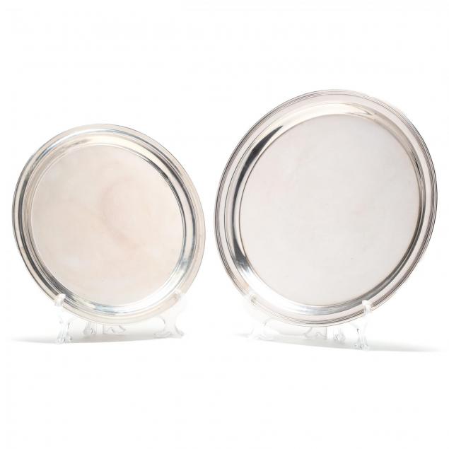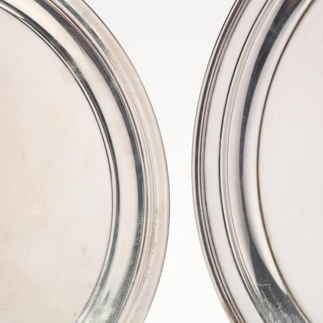 The first by International, pattern number 102 70 /2 (12 in. diameter); the second by Gorham, pattern number 485 (14 in. diameter). No monograms.