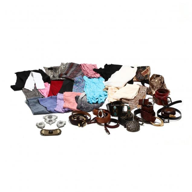 20th century, assortment of styles and materials, featuring name brands such as YSL, Donna Karan, Giorgio Armani, Barry Kieselstein, and three Alexis Kirk belt buckles.