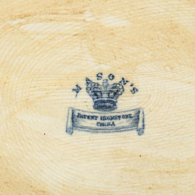 19th century, blue and white transfer featuring flowers and birds, stamped on the back.