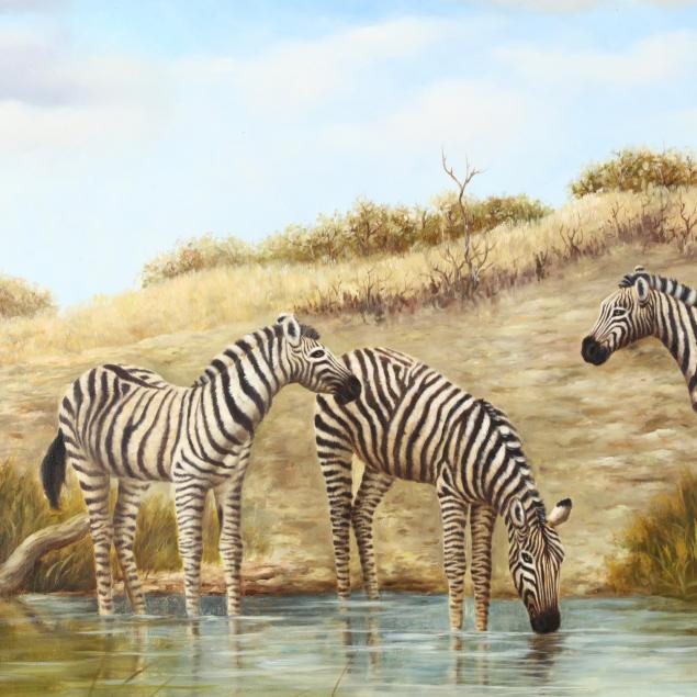 Oil on canvas, appears unsigned, presented in a woven leather frame with linen liner.