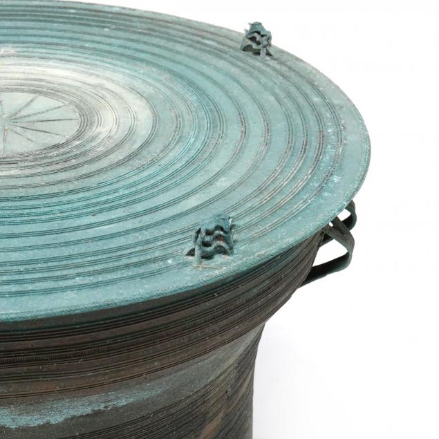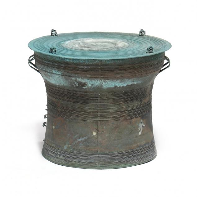 From the Collection of a Gentleman, Florida Verdigris and signs of outdoor use; dent and small crack at base; small tear to side of base; areas of restoration to base.