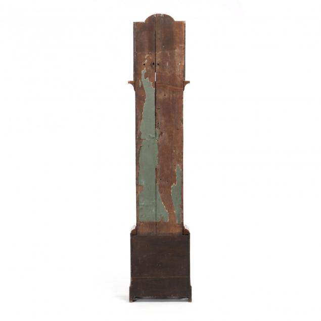 A Private Collection of Contemporary American Art Later 23 in. case section and feet; missing glass panel to right side of hood; shrinkage crack to right side of waist door, expected paint loss and flaking throughout. Please See Terms and Conditions: Clocks and Watches.