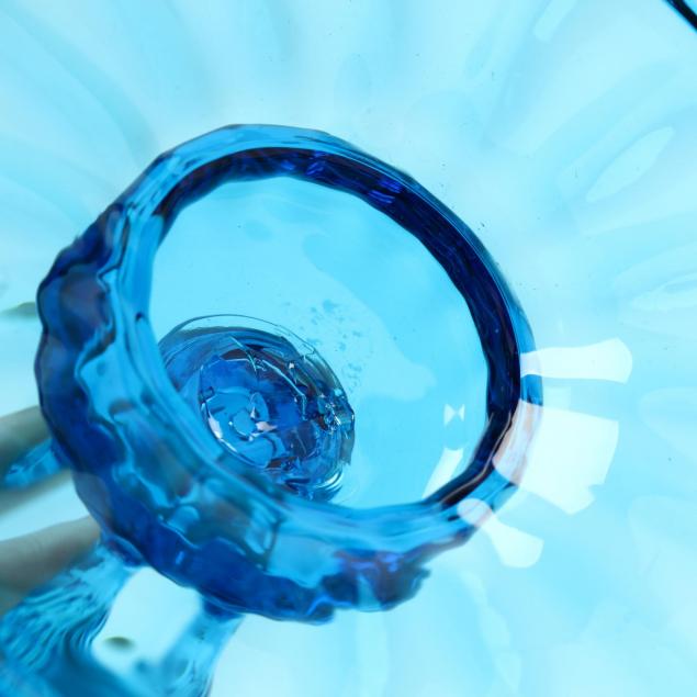 Steuben, Pair of Blue Glass Candlesticks