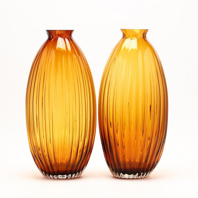 20th century, ovoid form, both in a amber color, not signed.