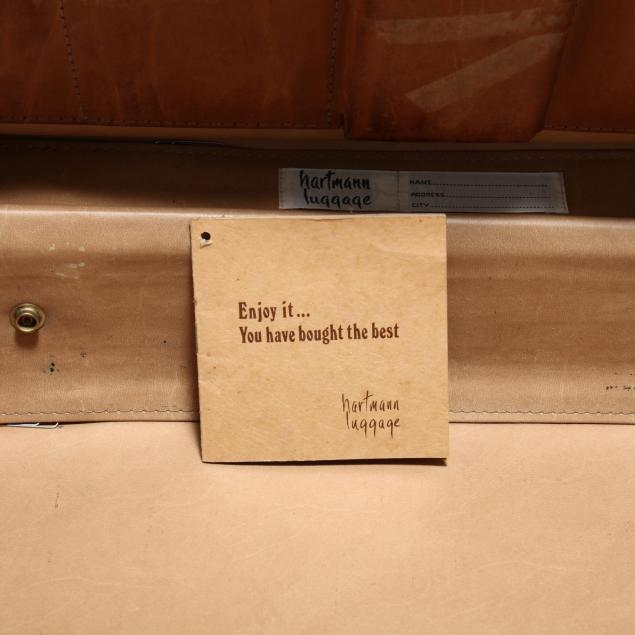 Circa 1970, light brown leather, brass hardware, divided interior, labeled.