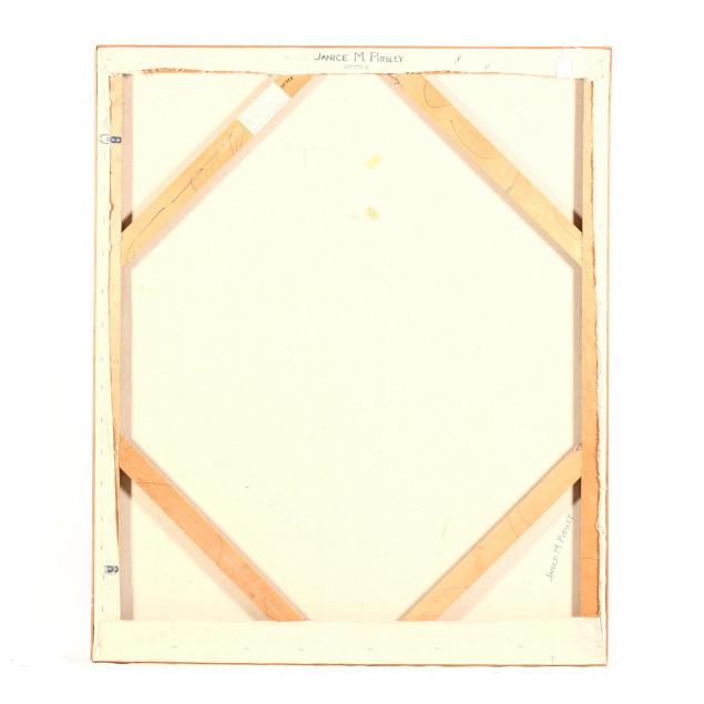 Acrylic on canvas, signed on the verso, framed, retaining exhibition label to the verso.